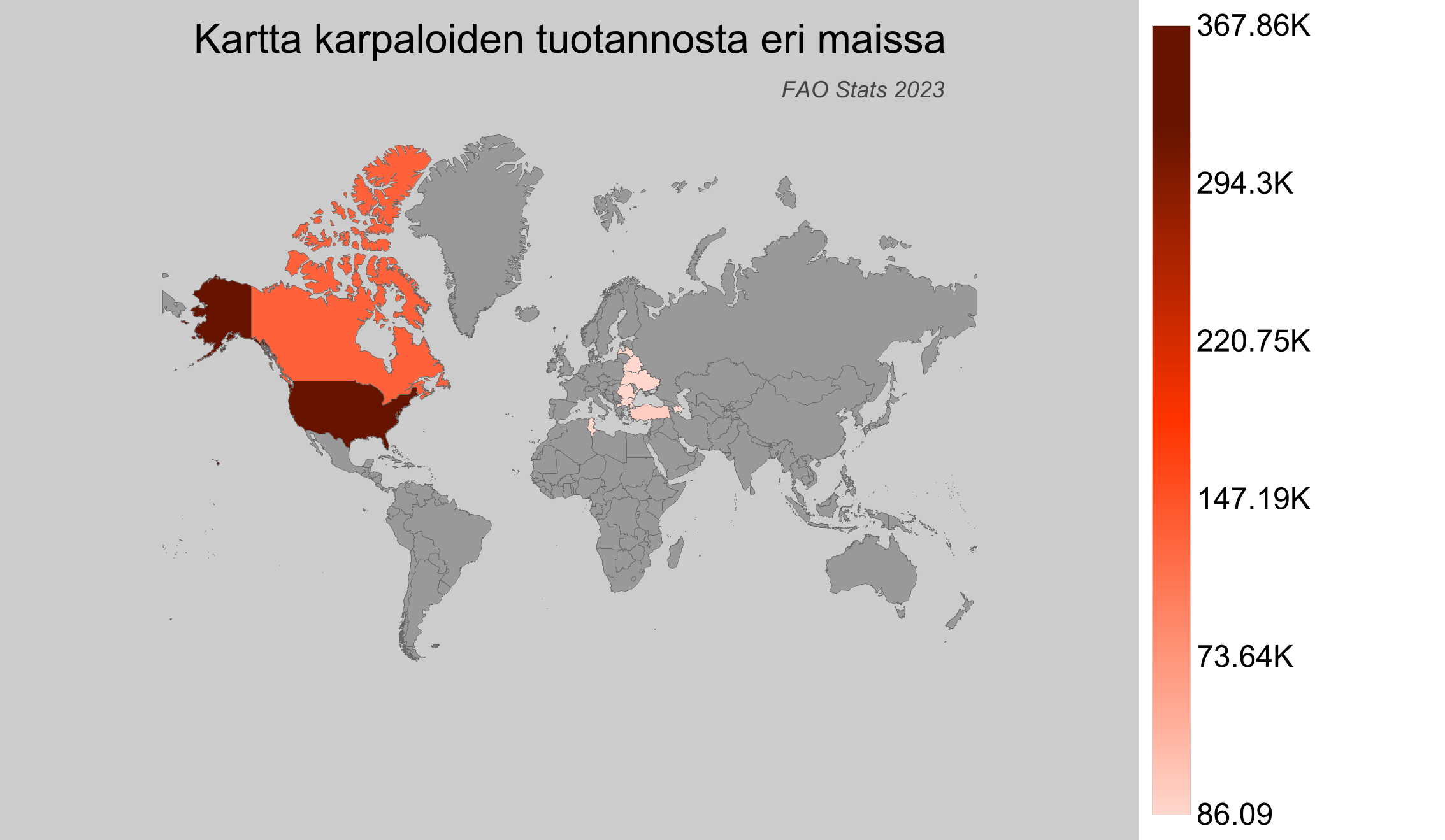 - Suomi: Valitettavasti Suomi ei ole listattu FAO:n tilastoissa cranberry-tuottajana.