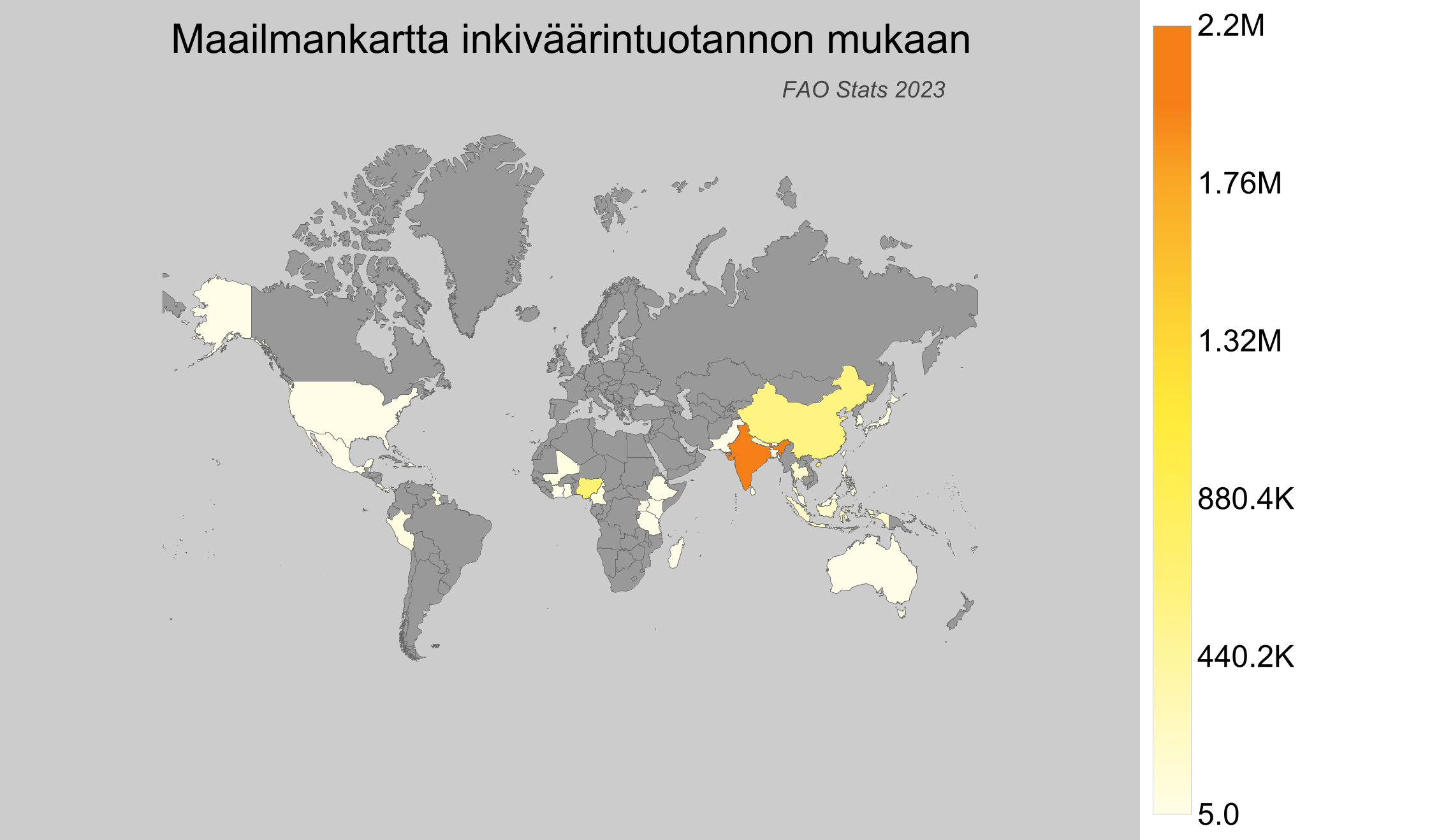 - Suomi ei tuota inkivääriä FAO:n tilastojen mukaan.
