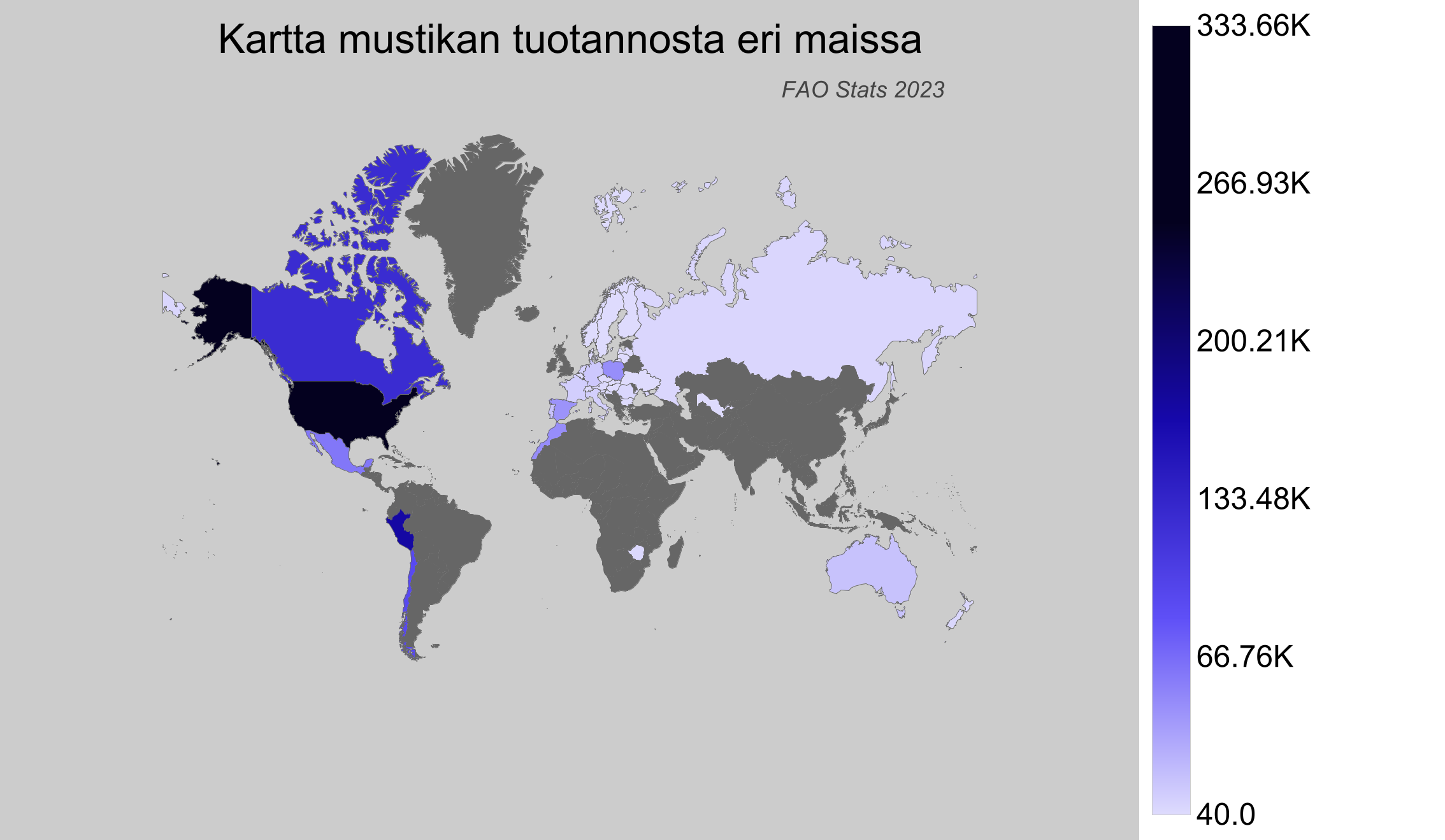 - Yhdysvalloissa tuotettiin noin 334 000 tonnia mustikoita vuonna 2023, mikä tekee siitä maailman suurimman tuottajan.